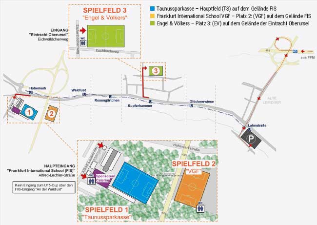 Von einer Anfahrt mit PKW zum Allianz U15-Cup in Oberursel raten wir ab. Öffentliche Parkplätze stehen nur in sehr begrenztem Umfang zur Verfügung und sind sicher schnell belegt. Falschparker erhalten Strafzettel und werden im Bedarfsfall kostenpflichtig abgeschleppt.